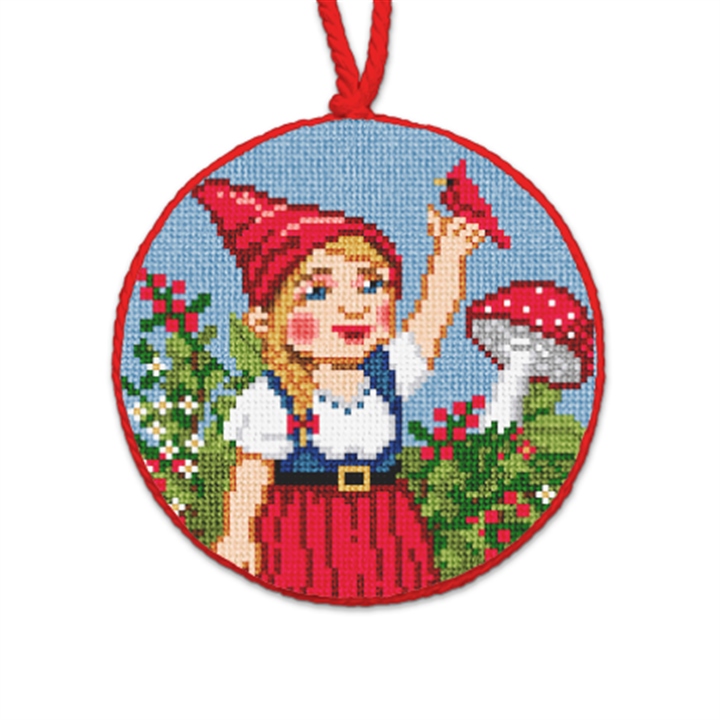 Mushroom Gnome Mini Stocking Needlepoint Kit