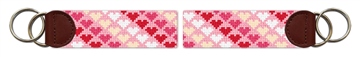 We custom make each key fob by hand and can personalize any of our designs. We use 100% genuine leather for the trim of the key fob. Our key fobs are 3.75 inches x 1.1 inch. Since we create only the finest quality needlepoint products, we offer a 100% satisfaction guarantee on the stitching and quality of our work. For this reason, we ask that you take your time when reviewing and approving your design. Remember that it will take us about 8 - 12 weeks to stitch and finish your needlepoint key fob.