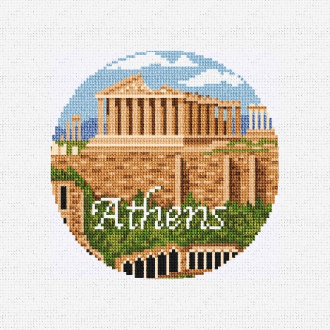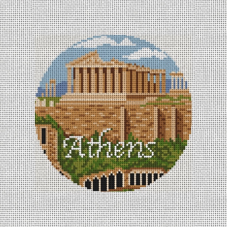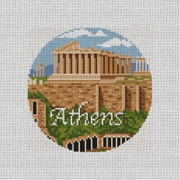 Athens is a captivating blend of ancient history and contemporary vibrancy; with the perfect Mediterranean climate and the capital city of Greece. This ornament canvas design features: the Acropolis, Parthenon, Temple of Nike, and Old Agora. When you gather around the tree this holiday season, enjoy the needlepoint ornaments that you have stitched reflecting the travels your family has experienced together. (DMC embroidery floss is optional, does not include finishing materials)