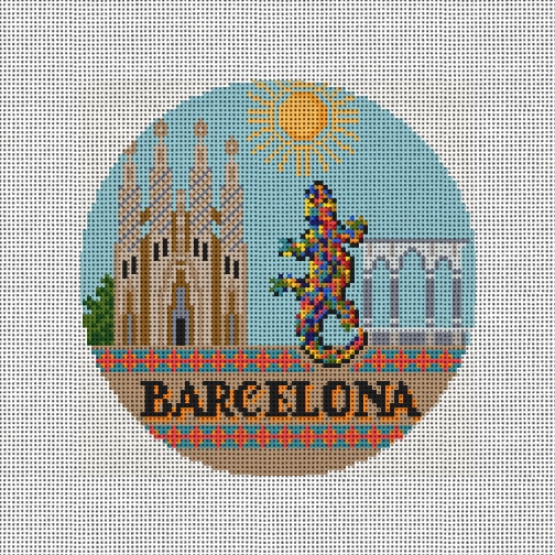 When you gather around the tree this holiday season, enjoy the Barcelona ornament that you have stitched reflecting the travels your family has experienced together! This Barcelona Christmas ornament canvas features: the Sagrada Familia Basilica, Placa d'Espanya, Parc Guell and the warm summer sunshine. (DMC embroidery floss is optional, does not include finishing materials) Check out our blog post with more travel destination ideas: https://www.needlepaint.com/blog/2020/09/15/travel-round-needlepoint-ornament/If you would like our designers to create a custom travel ornament especially for you, go to: https://www.needlepaint.com/needlepoint-kits/custom-vacation-needlepoint-ornament-canvas-1384