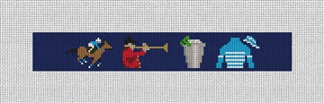 A toast to tradition and spirit -- fast horses and southern charm! Stitch a needlepoint key fob kit that races in style, while capturing the essence of the event featuring an assortment of derby icons. A colorful derby themed canvas to stitch for yourself, a gift or to give as a project to someone else who loves to stitch. (DMC embroidery floss optional, does not include finishing materials.)