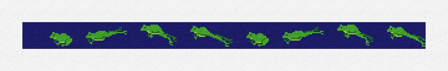Mesh Count: 18 per inch Canvas Size: 20 x 3.22 inches Print Size: 18 x 1.22 inches Thread Type: DMC Embroidery Floss Thread Color Count: 5