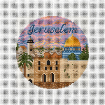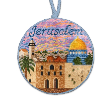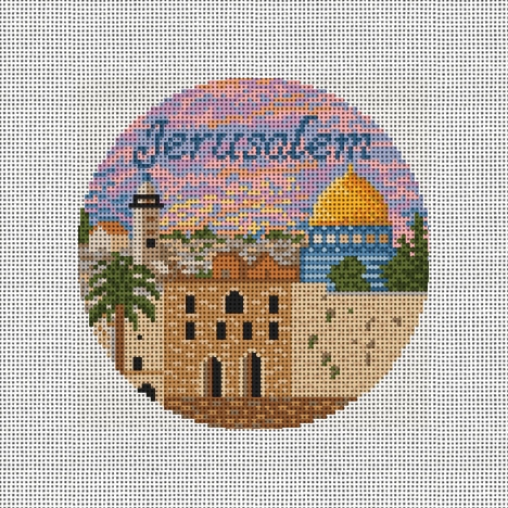 In the spiritual and historical heart of Israel, you will find a vibrant tapestry of cultures in the city of Jerusalem. This ornament canvas design features: Dome of the Rock, Wailing Wall, Old City, and Temple Mount. When you gather around the tree this holiday season, enjoy the needlepoint ornaments that you have stitched reflecting the travels your family has experienced together. (DMC embroidery floss is optional, does not include finishing materials)
