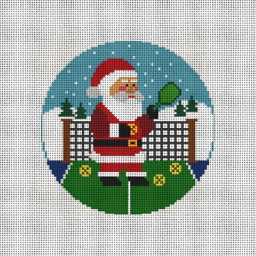 Pickle! Pickle! Santa has found a new favorite sport! Stitch this whimsical pickleball themed needlepoint ornament canvas and create a must have for any pickleball enthusiast's holiday collection. (DMC embroidery floss is optional, does not include finishing materials.)