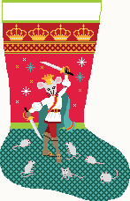 Every great story needs a villain. In Tchaikovsky's Nutcracker Suite, the Mouse King plays this part perfectly. When the clock strikes midnight things become alive. The Mouse King corners the beloved Nutcracker and battle pursues. Things quickly come to a halt when Clara throws her slipper at the Mouse King, hitting him square in the head. The Mouse King is taken away by his army of mice thus ending the conflict. We think our Mouse King Nutcracker needlepoint kit will make your holidays come alive. This stocking would also look great as part of a series of stockings to stitch for your fireplace, with Clara and the Sugar Plum Fairy. (DMC embroidery floss is optional, does not include finishing materials)