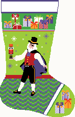 Herr Drosselmeyer is a magician-like figure, with cape and eye patch. A character of great mystery and intrigue. In the Nutcracker Suite story, Herr Drosselmeyer is known as Clara's grandfather (depending on which version of the story you are familiar with, he is sometimes known as Clara's uncle or godfather). He arrives at the family holiday party with gifts for all, and for Clara he brings a wooden nutcracker in the shape of a little man. Our Herr Drosselmeyer needlepoint stocking, is a wonderful stocking to stitch for your fireplace; with or without the other character stockings from our Nutcracker Suite Christmas stocking set. (DMC embroidery floss is optional, does not include finishing materials)