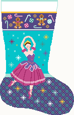 In the Nutcracker Suite, the Nutcracker turns into a prince and escorts Clara to the Land of Sweets. They are promptly greeted by the Sugar Plum Fairy. After she learns about their daring battle with the Mouse King and his mice, the Sugar Plum Fairy rewards Clara and the Prince with a celebration of dances. We've designed our Sugar Plum Fairy needlepoint stocking canvas so you can stitch the magic and beauty, which are conveyed in the Nutcracker Suite. This Sugar Plum Fairy Christmas stocking will sure to become a part of your holiday traditions. (DMC embroidery floss is optional, does not include finishing materials)