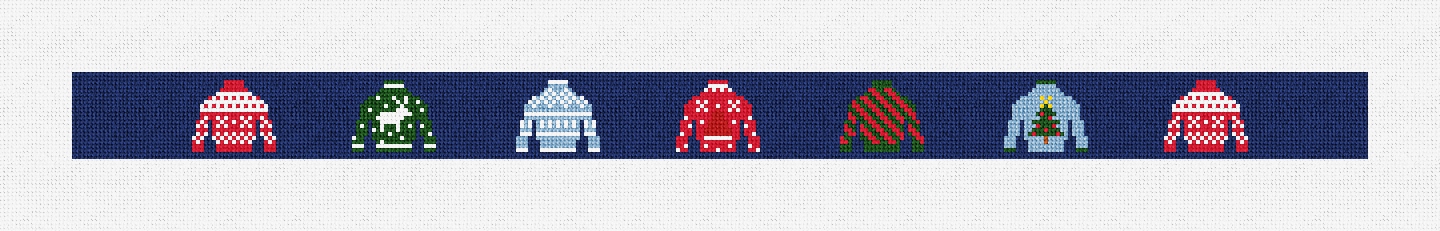 Mesh Count: 18 per inch Canvas Size: 20 x 3.22 inches Print Size: 18 x 1.22 inches Thread Type: DMC Embroidery Floss Thread Color Count: 8