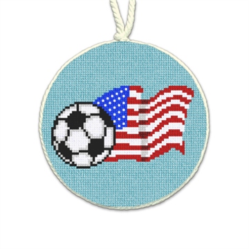 United by game! A festive nod to the unity and passion of the wonderful game of soccer. From our collection of needlepoint ornaments inspired by the energy of worldwide competition and unforgettable goals. Decorate, cheer, score, celebrate!