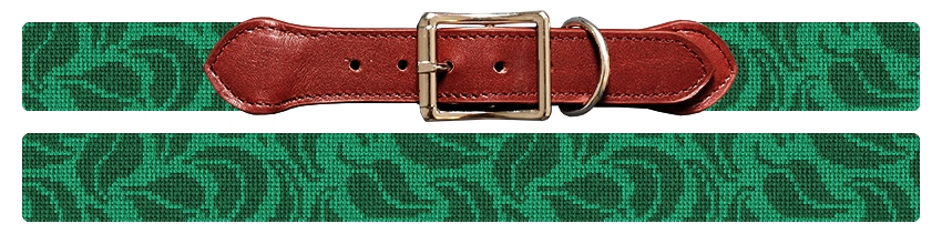 Twisting vines and bright spring greens make this needlepoint dog collar a cheerful accessory that's perfect for wagging through sunny adventures. It's a dog's life -- play, stay, eat, sleep, rollover, sit and look cute in your new needlepoint dog collar.