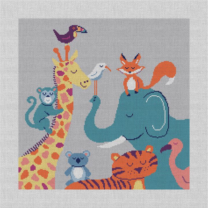 Mesh Count: 14 per inch Canvas Size: 16 x 16 inches Print Size: 14 x 14 inches Thread Type: DMC Embroidery Floss Thread Color Count: 15