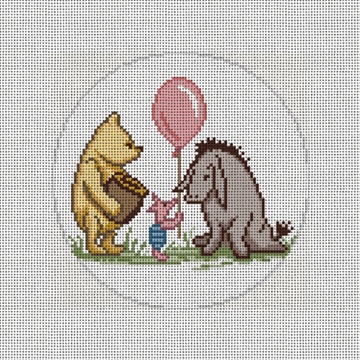 "Nobody can be un-cheered with a balloon." Piglet's gentle gesture to cheer up Eeyore, just might be successful! A needlepoint collection we know you'll enjoy stitching for this year's Christmas holiday; inspired by the adorable insights and amusing thoughts of Winnie the Pooh and his friends, from the classic storybook author A.A. Milne. (DMC embroidery floss is optional, does not include finishing materials)