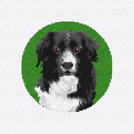 Extremely intelligent with an unlimited amount of energy, your Border Collie will chase a frisbee for countless hours; but loves nothing more than some snuggle time with the family while enjoying the holiday tree. Include your Border Collie when celebrating the holidays, and make this Christmas extra special by stitching an ornament canvas featuring your favorite family member. (DMC embroidery floss is optional, does not include finishing materials)