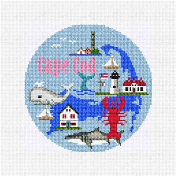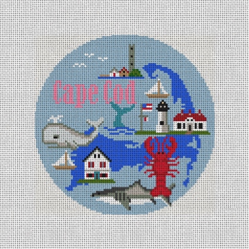 Family memories are made in Cape Cod! Resting, relaxing, recreating, and escaping the summer heat of the city, while enjoying quality time with family and friends. When you gather around the tree this holiday season, enjoy the ornaments that you have stitched reflecting the travels your family has experienced and enjoyed together. (DMC embroidery floss is optional, does not include backing or edging)