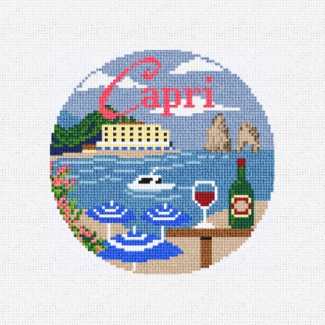 Savor the sparkle of Capri! Where sunsets paint the sea gold and every corner whispers of romance and adventure. Bring your favorite travel adventures to life -- one stitch at a time! (DMC embroidery floss is optional, does not include finishing materials)