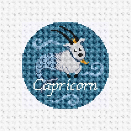 The celebration of "Capricorn the Goat" is between December 22nd and January 19th. I am very confident and disciplined in taking advantage of every foothold, and always tenacious in working through obstacles. When I'm not being quite so serious, I do have the most delightful sense of humor. The stars are aligned! Stitch an ornament for someone special, who is as unique as their astrology sign. (DMC embroidery floss is optional, does not include finishing materials)