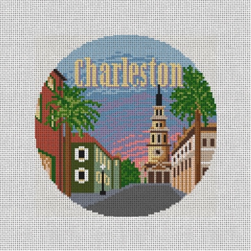 Charleston, South Carolina is one of the oldest cities in the United States, featuring historic houses, cobblestone streets, and plenty of charming architecture. This ornament canvas features the beautiful Rainbow Row streetscape with the St. Philips Church. When you gather around the tree this holiday season, enjoy the ornaments that you have stitched reflecting the travels your family has experienced together. (DMC embroidery floss is optional, does not include backing or edging)