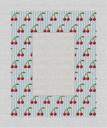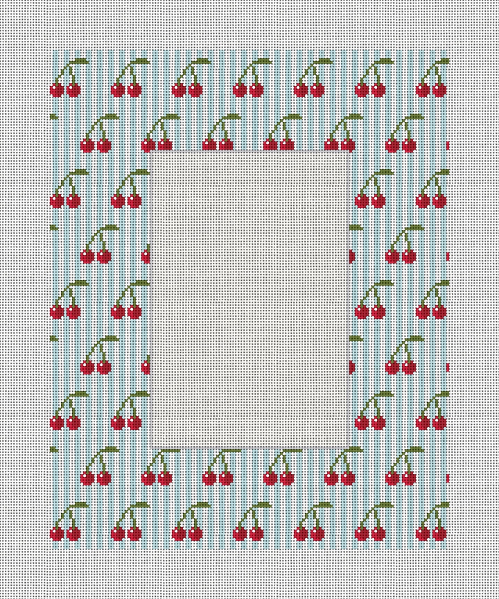 Cherry on top! This sweet design adds paired up cherries with a pop of fruity fun. Picture perfect -- add special needlepoint stitches to a cherished memory. Accommodates a 4" x 6" image. Stitch, frame, admire, enjoy!