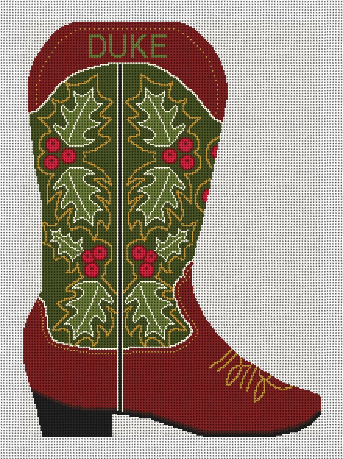 Rope up some joy, let the spirit take root -- Christmas is sweeter with a festive boot! Ho-ho-howdy, the season is here, stitch and fill up your holiday boot with goodies and gear! (DMC embroidery floss optional, does not include finishing materials) GG