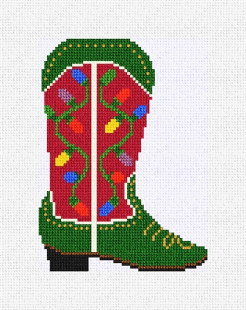 Tiny and bright, a cowboy's delight! Ho-ho-howdy, the season is here, stitch and decorate your holiday tree with western cheer! (DMC embroidery floss optional, does not include finishing materials) GG