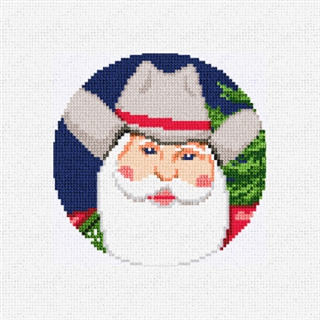 He's a bit gruff, but kind, with a twinkle in his eye revealing his love for Christmas! Stitch and add a heartwarming blend of holiday magic and Western adventure to your holiday decor with this fun needlepoint ornament design. (DMC embroidery floss is optional, does not include finishing materials)