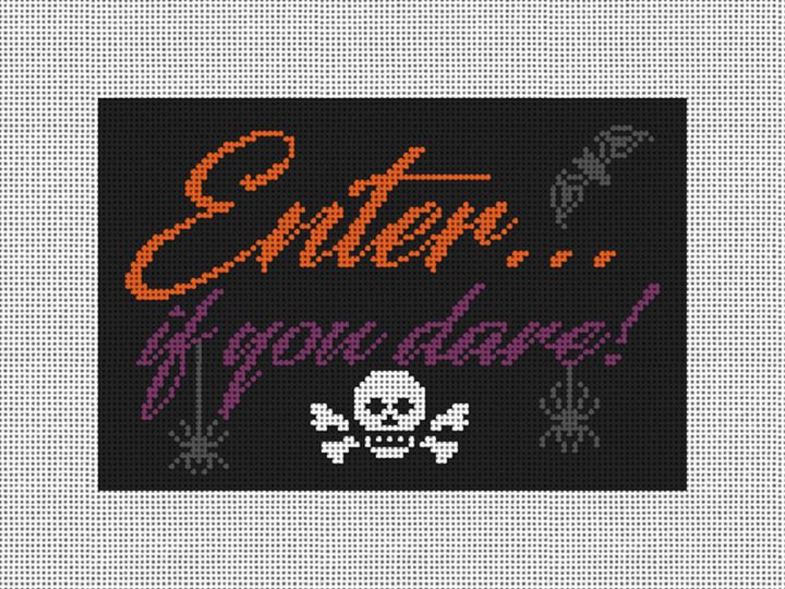 Enter if you dare but beware this Halloween night, it seems however that some of the tricker treaters just aren't right. As a matter of fact we're pretty certain that they may not make it home at all tonight! Put your own unique spin on this year's Halloween decorations and stitch up an unforgettable night! (DMC embroidery floss is optional, does not include backing or edging)