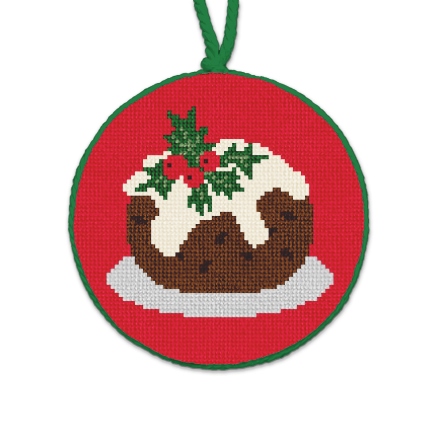 Sugar and spice, cozy and nice; this pudding design is pure delight! Needlepoint holiday treats -- oh so sweet! (DMC embroidery floss optional, does not include finishing materials)