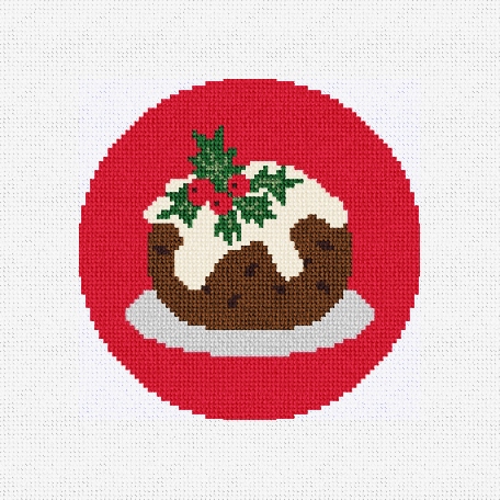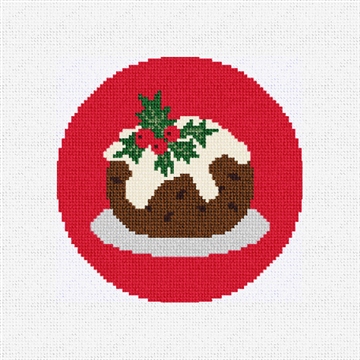 Sugar and spice, cozy and nice; this pudding design is pure delight! Needlepoint holiday treats -- oh so sweet! (DMC embroidery floss optional, does not include finishing materials)