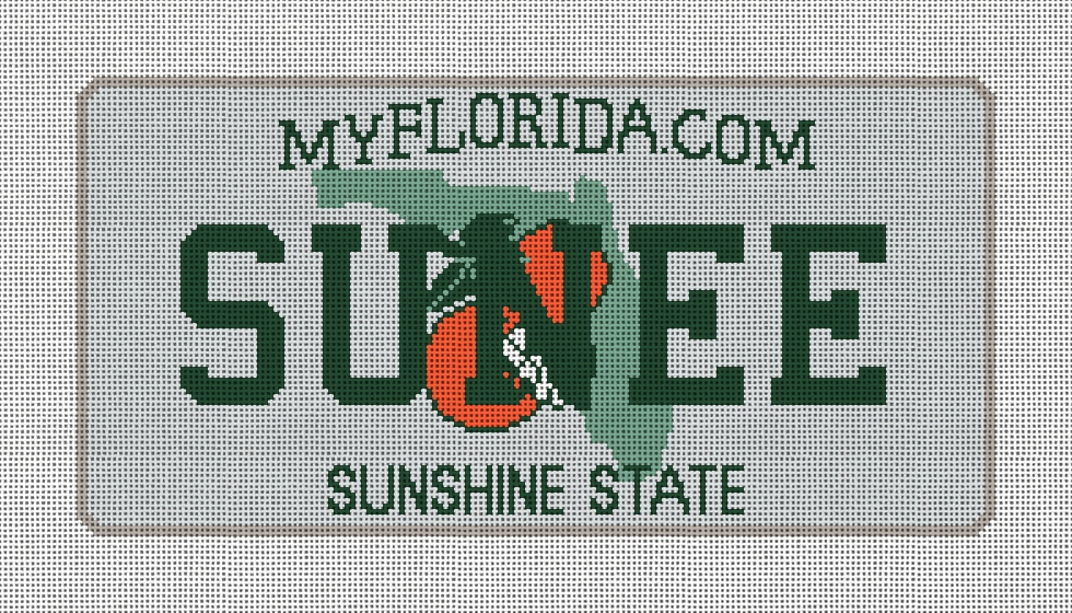 A playful Sunshine State vanity plate that turns your favorite phrase into a little slice of paradise! Your state, your pride, turn your home into a colorful lane of creativity. (DMC embroidery floss is optional, does not come with finishing materials)