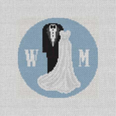 The newly married couple looked absolutely amazing at their black tie wedding ceremony! Remembering special events like a wedding are the perfect way to personalize a Christmas tree! Stitch and create a beautiful heartfelt ornament for the bride and groom's holiday tree. Add a special touch by personalizing this ornament canvas with the couple's initials. (DMC embroidery floss is optional, does not include backing or edging)