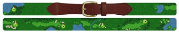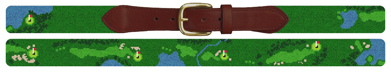 From tee to green, the Fox Run Golf Course in Ludlow, Vermont, is an amazing golf-experience! With stunning views, dramatic elevation, and wide fairways all wrapped in Vermont's scenic charm. We've included golf holes: 10, 11, 12, 16 and 17 on this golf course design for you to stitch. Please include a monogram to further personalize your belt canvas. (DMC embroidery floss is optional, does not include leather or buckle)