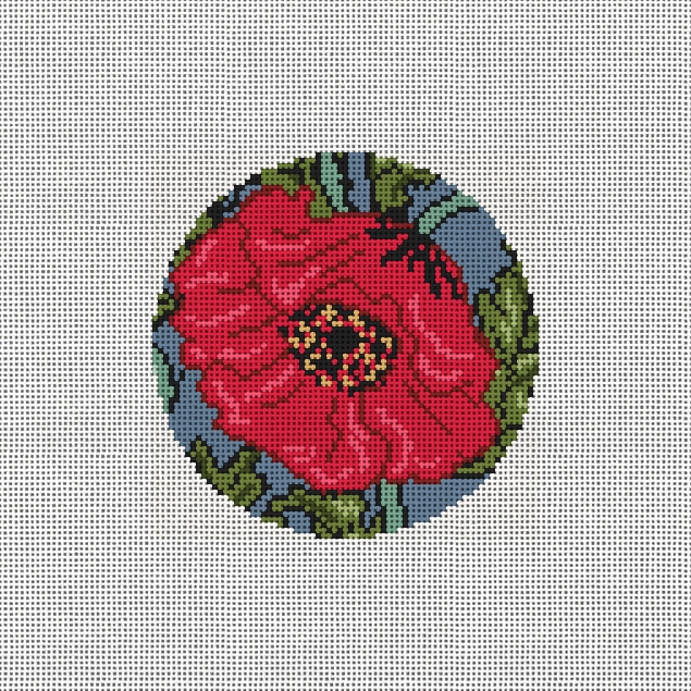 The most perfect poppy in a color palette for Christmas! From our needlepoint collection inspired by the natural forms and curvaceous lines of the Art Nouveau movement. Add a touch of nature to your holiday decor and stitch this beautiful needlepoint ornament canvas design. (DMC embroidery floss is optional, does not include backing or edging) (GG)