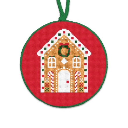 Frosting trim and windows bright, gingerbread dreams on a winter night! Needlepoint holiday treats -- oh so sweet! (DMC embroidery floss optional, does not include finishing materials)