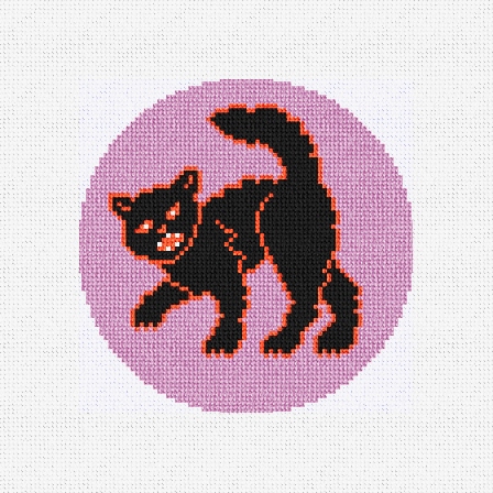 A black cat's fright only happens on a Halloween night, with the hairs on his back standing straight and upright. Don't let him walk in front of you, or you'll be the one having a bad night! Halloween comes but once a year, filled with tricks and spooky cheer. Create a little Halloween fun, one playful stitch at a time. (DMC embroidery floss is optional, does not include finishing materials.)