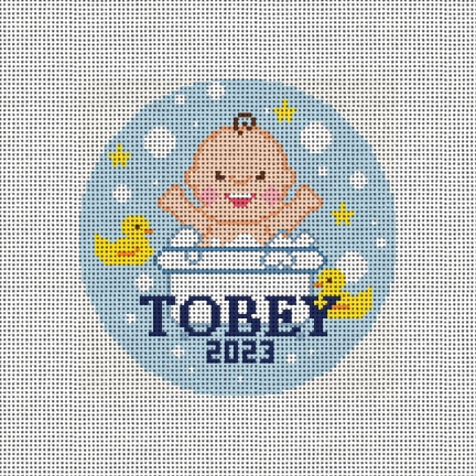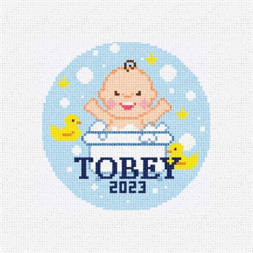 Congratulations on your new bundle of joy . . . tiny feet, tiny hands . . . it's a boy! Having a new baby join your family is nothing short of exciting, so be sure to celebrate this Christmas by stitching a needlepoint ornament canvas for your child or grandchild. (DMC embroidery floss is optional, does not include backing or edging)