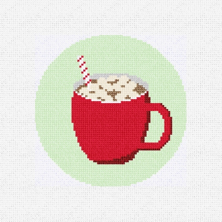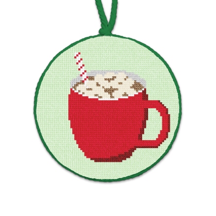 Cozy in with a mug both merry and bright, filled with hot cocoa joy on a winter's night! Needlepoint holiday treats -- oh so sweet! (DMC embroidery floss optional, does not include finishing materials)