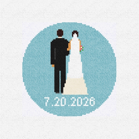 With this ring, I thee wed! A very special day captured forever on a needlepoint ornament that you have stitched, will be the perfect keepsake for the newly married couple to enjoy for years to come! Personalize this design with the couple's wedding date. (DMC embroidery floss is optional, does not include backing or edging)