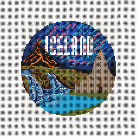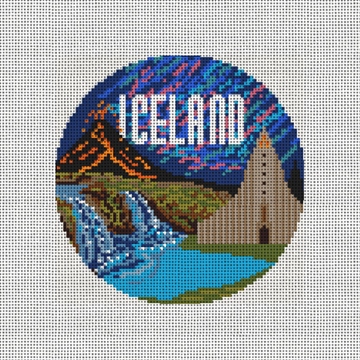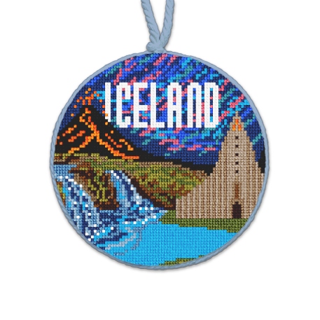 The Nordic island country of Iceland, is known for their stunning natural phenomena such as the Northern Lights, and cultural traditions rooted in Viking heritage; a must see on any travel itinerary. This ornament canvas design features: a volcano, glacier melt off waterfall, blue lagoon, and Hallgrimskirkja church. Bring your favorite travel adventures to life -- one stitch at a time! (DMC embroidery floss is optional, does not include finishing materials)
