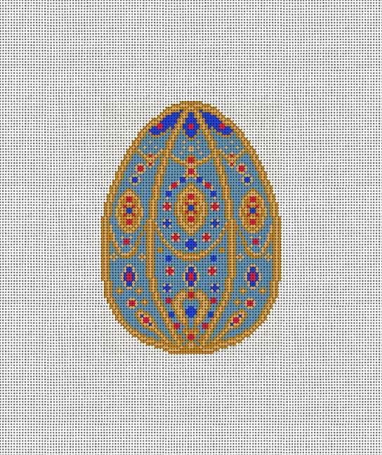 Inspired by the last Fabergé egg which was gifted to Empress Maria Feodorovna from Alexander III, this design resembles an oval agate casket which was created by the Dutch Master Le Roy. Welcome in the spring season this Easter by stitching and starting your own tradition of gifting a needlepoint egg ornament every year. These needlepoint designs are perfect for special stitches and small delicate details. (DMC embroidery floss is optional, does not include backing or edging)