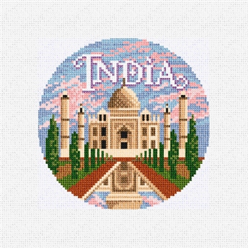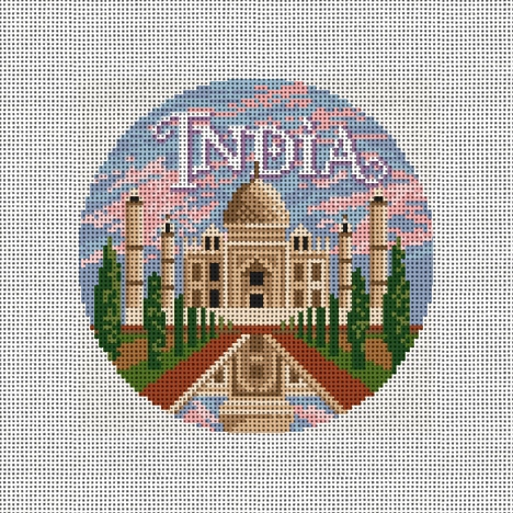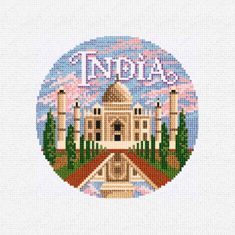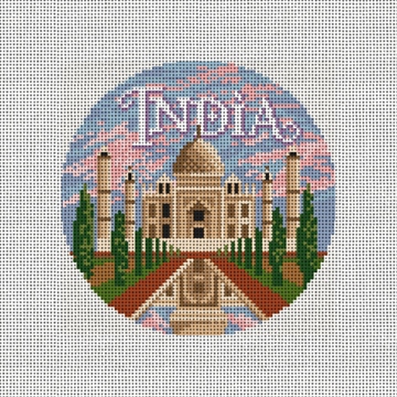 India's blend of ancient traditions and modern innovations, combined with its vast cultural and geographic diversity, makes it one of the most fascinating and influential countries in the world. This ornament canvas design features the Taj Mahal. Bring your favorite travel adventures to life -- one stitch at a time! (DMC embroidery floss is optional, does not include finishing materials)
