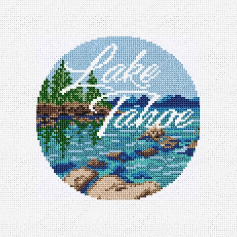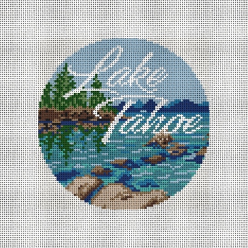 Nestled in the Sierra Nevada Mountains, Lake Tahoe is an alpine paradise known for towering pines, crystal clear waters, majestic peaks, and stunning natural beauty. This ornament canvas design features a breathtaking view of beautiful Lake Tahoe. When you gather around the tree this holiday season, enjoy the needlepoint ornaments that you have stitched reflecting the travels your family has experienced together. (DMC embroidery floss is optional, does not include finishing materials)