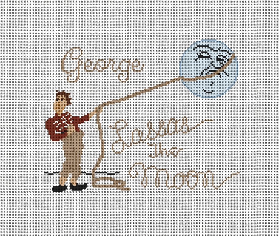 A timeless wink to nostalgic romance -- George lassos the moon for the one he loves. Stitch this needlepoint design bringing the glow of Bedford Falls straight to your sofa with its dreamy lunar lasso. (DMC embroidery floss is optional, does not include finishing materials.)