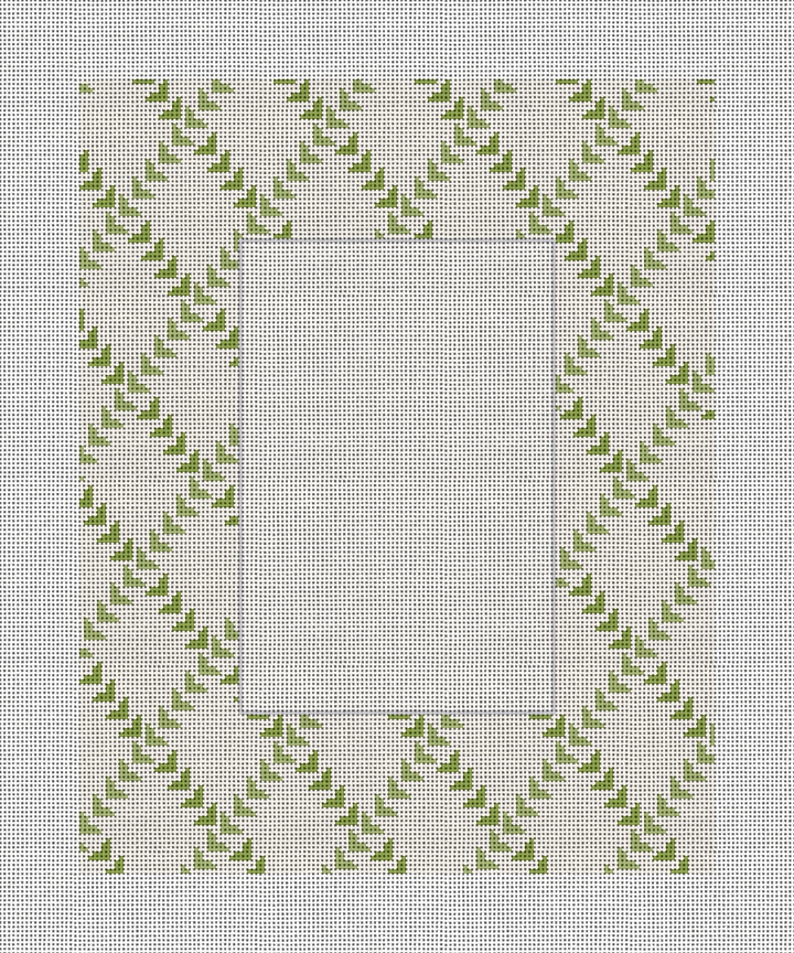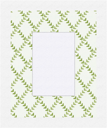 Trellis chic! Playful leaves and woven vines make this design a garden party for your needlepoint. Picture perfect -- add special needlepoint stitches to a cherished memory. Accommodates a 4" x 6" image. Stitch, frame, admire, enjoy!