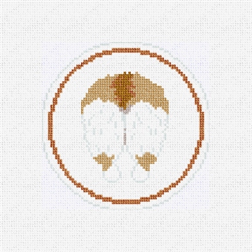 That little light brown Corgi backside, what's not to love ! He's smart, affectionate, polite and is considered a "big dog on short legs". This cute needlepoint canvas can be stitched to make a unique Christmas tree ornament, or made into a coaster for your hot chocolate. (DMC embroidery floss is optional, does not include finishing materials)