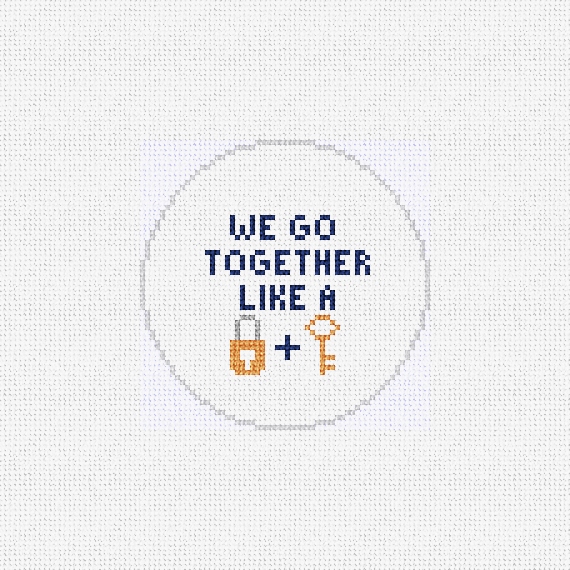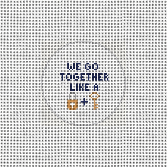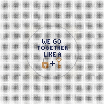Lock and key! You can't have one without the other -- the perfect pair, better together. Stitch a needlepoint message of love this Valentine's Day for the other half who makes your heart whole. (DMC embroidery floss is optional, does not include finishing materials)