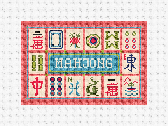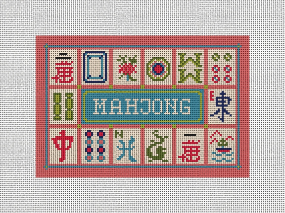 Time to play Mahjong! This detailed graphic celebrates the enduring fascination that Mahjong holds for people around the world, with its unique combination of strategy, skill, and a bit of luck. Be the envy of your fellow opponents by stitching this intricate needlepoint card bag. Feel free to personalize this design with your monogram or initials. (DMC embroidery floss is optional, does not finishing materials)