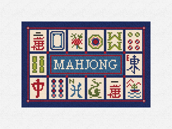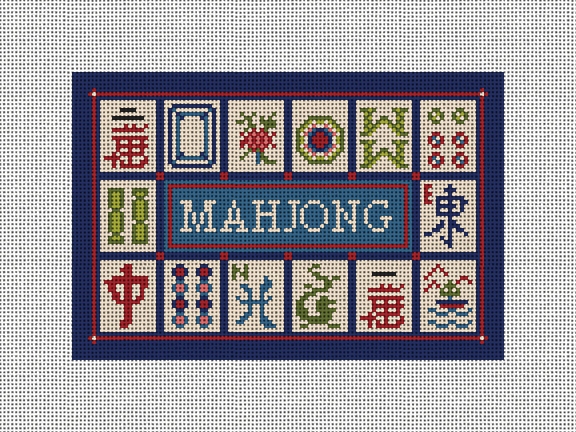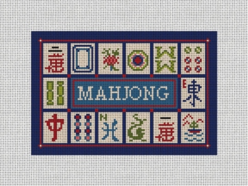 Mahjong! This design celebrates the enduring fascination that Mahjong holds for people around the world, with its unique combination of skill, strategy, and a touch of luck. Be the envy of your fellow opponents by stitching this intricate needlepoint card bag. Feel free to personalize this design with your monogram or initials. (DMC embroidery floss is optional, does not finishing materials)