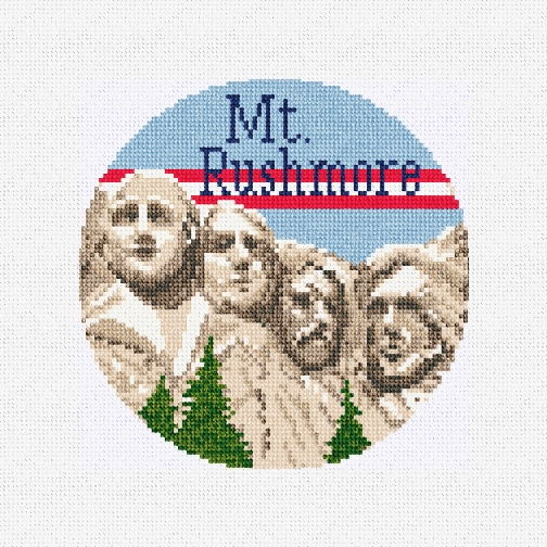 This renowned American landmark in South Dakota, features the towering faces of four iconic presidents: George Washington, Thomas Jefferson, Theodore Roosevelt, and Abraham Lincoln. When you gather around the tree this holiday season, enjoy the needlepoint ornaments that you have stitched reflecting the travels your family has experienced together. (DMC embroidery floss is optional, does not include finishing materials)