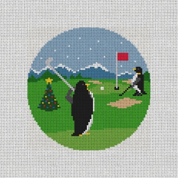 One swing at a time -- this festive penguin is driving home some Christmas cheer! Good times, laughter and plenty of cheer, the holidays are extra fun when good friends are near. Needlepoint, decorate, celebrate, repeat! (DMC embroidery floss is optional, does not include finishing materials)