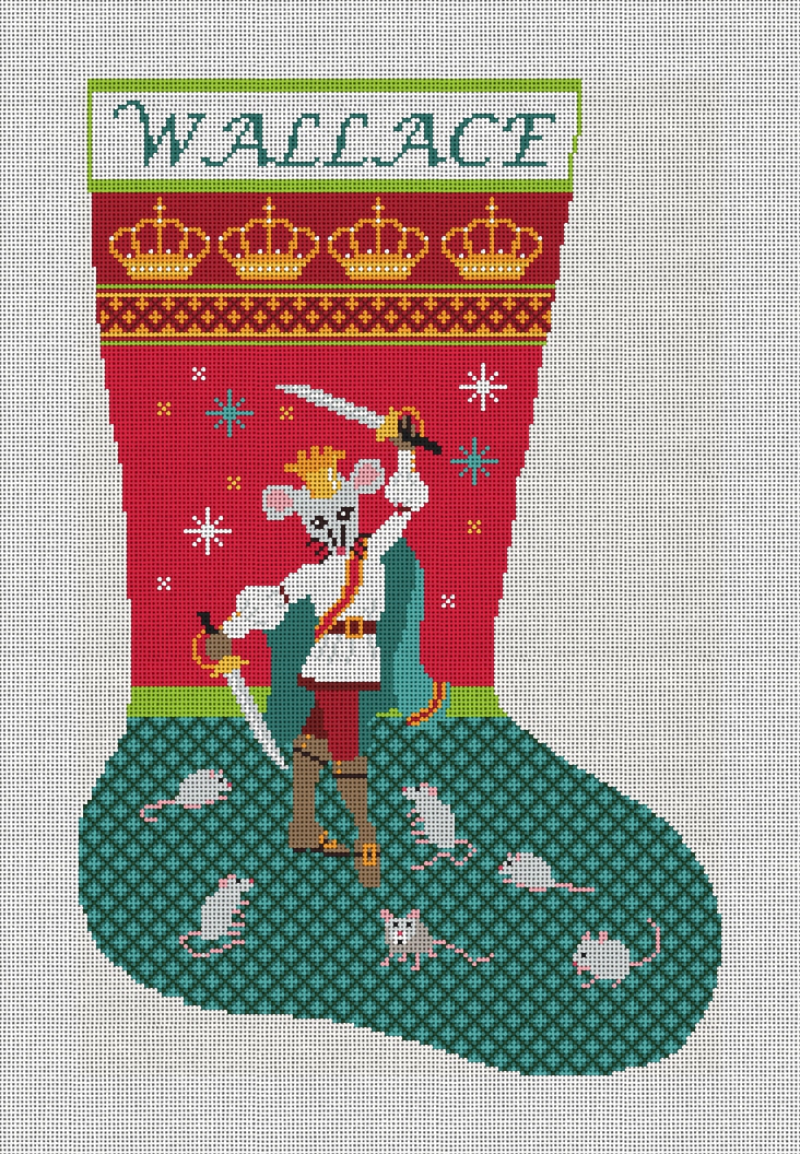 Every great story needs a villain. In Tchaikovsky's Nutcracker Suite, the Mouse King plays this part perfectly. When the clock strikes midnight things become alive. The Mouse King corners the beloved Nutcracker and battle pursues. Things quickly come to a halt when Clara throws her slipper at the Mouse King, hitting him square in the head. The Mouse King is taken away by his army of mice thus ending the conflict. We think our Mouse King Nutcracker needlepoint kit will make your holidays come alive. This stocking would also look great as part of a series of stockings to stitch for your fireplace, with Clara and the Sugar Plum Fairy. (DMC embroidery floss is optional, does not include finishing materials)